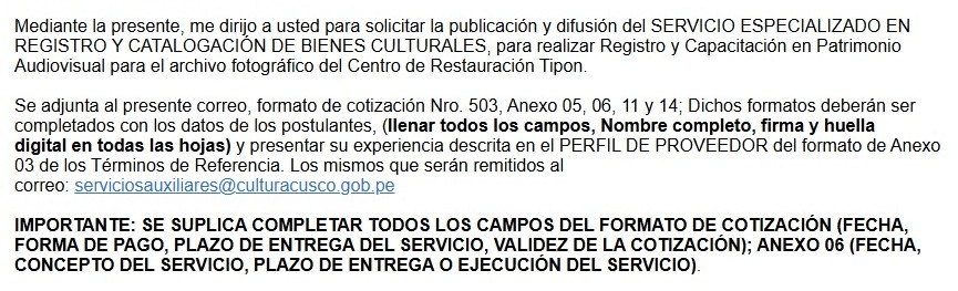Posted on mayo 23, 2025mayo 23, 2025 by adminCONVOCATORIA LABORAL / REGISTRO Y CATALOGACIÓN DE BIENES CULTURALES – TIPON